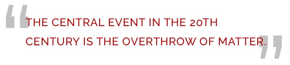 comes not to the rulers of slave labor, but to the liberators of human creativity, not to the conquerors of land but to the emancipators of the mind. Electronics is the worlds fastest growing industry. yet what is an electron? An electron is a field, not matter. An electron is a field that gives probability distributions for possible measurements as a function of time. The field gives an index of the liklihood an electron will appear at one place rather than another. It is a field of information. The exemplary technology of the era is the microchip. More than any other invention, this device epitomizes the overthrow of matter. Humans resist the rules of the new microcosm and even rebel against it. They don't understand it. The new physics of the microcosm is contrary to all human intuition and metaphor. How do you explain an electron, in a material world?"